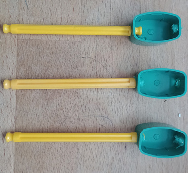 The Japanese seesaw toy: (Left and Middle left) The device. (Middle Right and Right) The replaceable release mechanism: by using different configurations we can modify the release of fluid, therefore the refractory period.