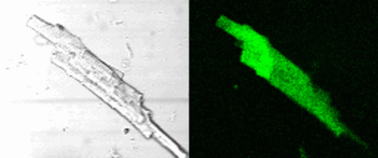 Propagating calcium wave producing the contraction of a ventricular cell. Copyright: Lee & Fenton